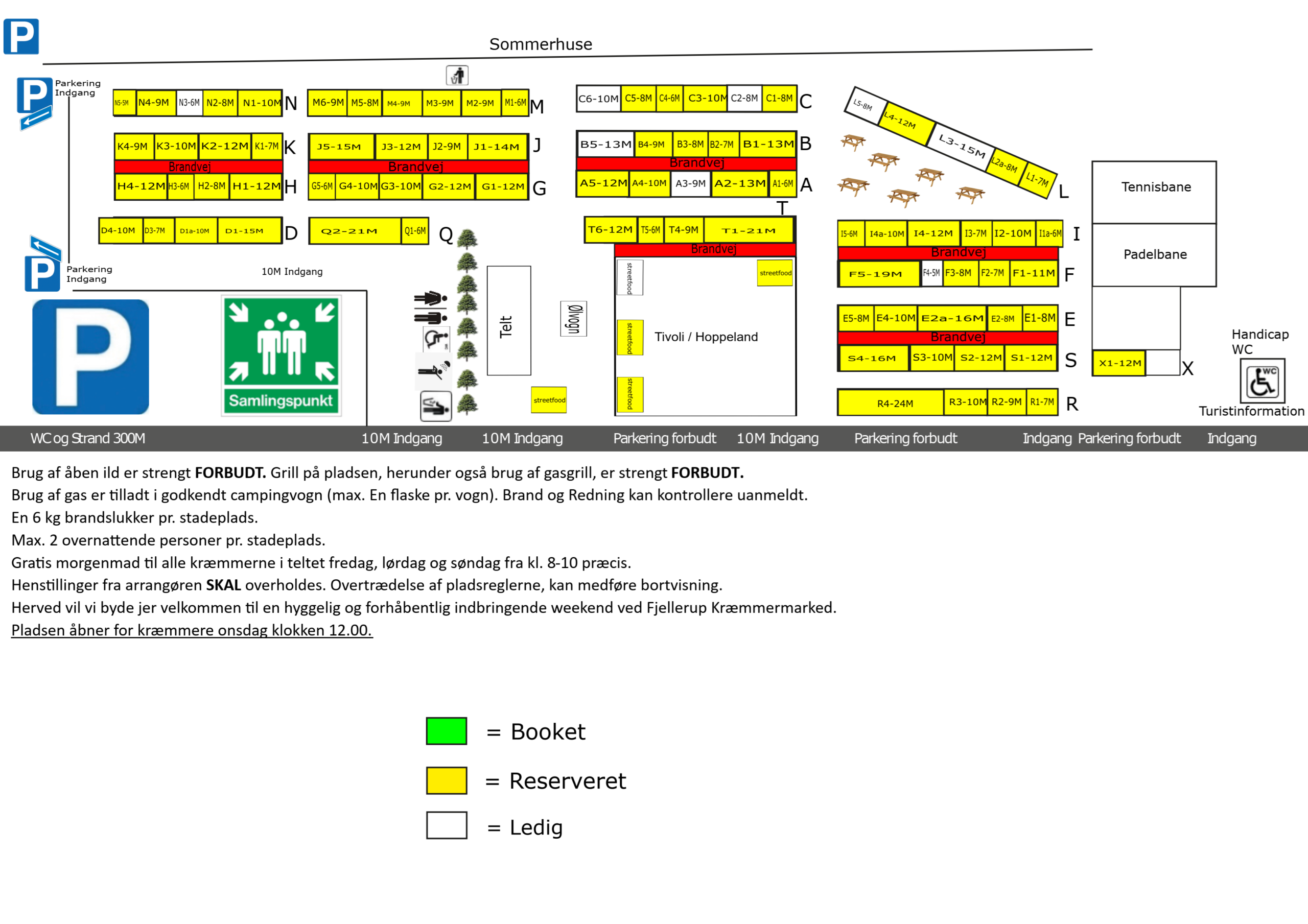 Pris pr. facade mtr. Kr. 900,- Pga. strøm kapacitet på kræmmer pladsen er der Max 16 amp. Pr. plads. Enhver streetfood bod, skal være registret og overholde fødevarestyrelsens regler. Enhver streetfood bod skal til enhver tid kunne fremvise hygiejnebevis. Enhver streetfood bod skal efterleve gældende regler for gas i cateringsvogne. Enhver streetfood bod skal medbringe egen godkendte brandsluknings materiel efter gældende lovgivning. Salg af drikkevarer må kun udføres af Fjellerup Kræmmermarked. Max. 2 overnattende personer pr. stadeplads. Gratis morgenmad til alle kræmmerne i teltet fredag, lørdag og søndag fra kl. 8-10 præcis. Henstillinger fra arrangøren SKAL overholdes. Overtrædelse af pladsreglerne, kan medføre bortvisning. Herved vil vi byde jer velkommen til en hyggelig og forhåbentlig indbringende weekend ved Fjellerup Kræmmermarked. Pladsen åbner for kræmmere/Streetfood onsdag klokken 12.00.